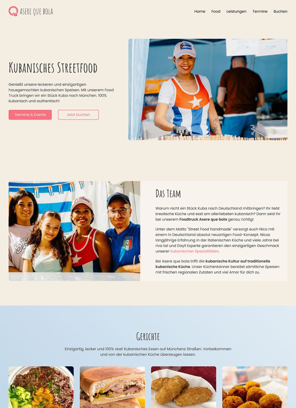 Hinweis: Die Website wurde in der Zwischenzeit vom Kunden selbst umgestaltet und entspricht nicht mehr meinem Werk. Ein besonderer Internetauftritt für ein besonderes Vorhaben: der erste kubanische Streetfood-Truck in München. Für eine angemessene Atmosphäre auf der Website wurde sich an den Farben der kubanischen Flagge orientiert. Um die Professionalität und die Klasse beizubehalten, wurde auf Pastellfarben gesetzt. Über spezielle Eingabemasken lassen sich zukünftig ganz einfach Events, Termine und neue Gerichte hinzufügen. Nach einer ausführlichen Konkurrenzanalyse und Keywordrecherche wurden die notwendigen Seiten erstellt und entsprechend optimiert.